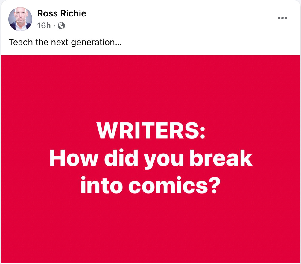 So, the first thing was, Ross Richie, former owner and CEO of Boom! Studios (and really nice guy, btw) posted this to Facebook: